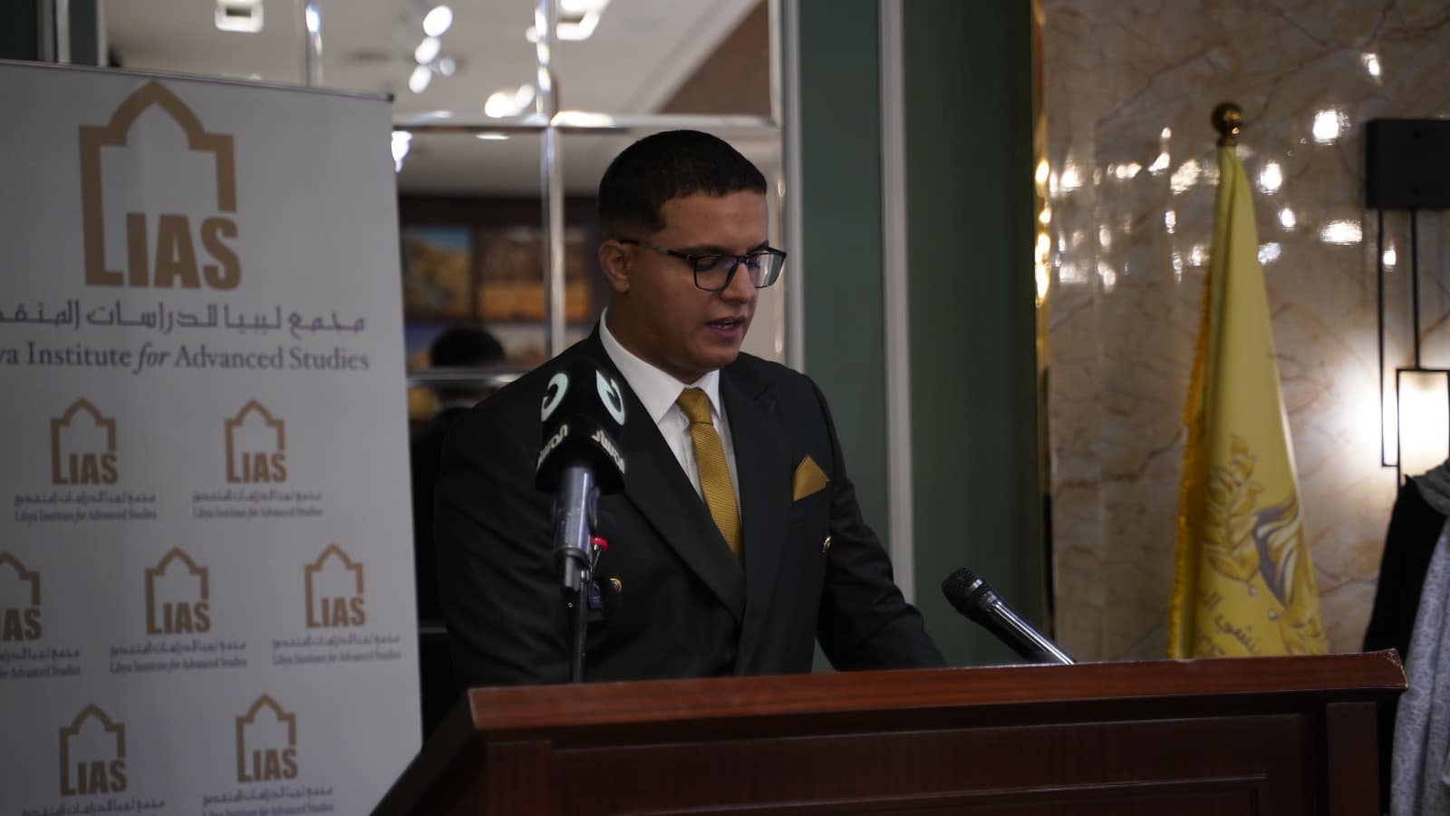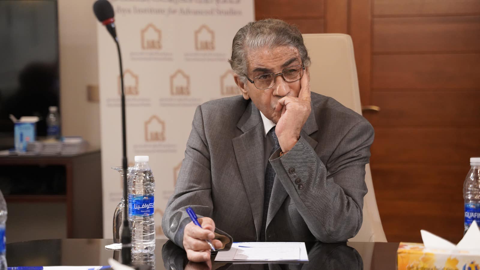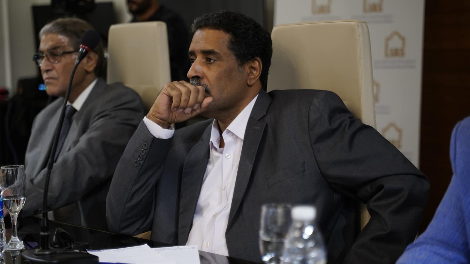أود أن أشكر الحضور الكريم: اللواء أحمد المسماري، المتحدث باسم الجيش الليبي، والفريق المصاحب له؛ المستشار المحترم إبراهيم بوشناف، وزير الداخلية الأسبق، مستشار الأمن القومي الليبي، والمستشار الدكتور فرج القطراني، رئيس نيابة المحكمة العليا، والدكتور عاشور شوايل، وزير الداخلية الأسبق.